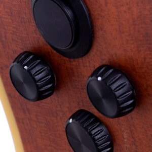 Com um visual natural que realça a beleza da madeira e um acabamento fosco que irradia sofisticação, este violão é verdadeiramente cativante tanto para os olhos quanto para os ouvidos. Seu tampo em Mogno maciço, combinado com laterais e fundo igualmente robustos, oferece uma ressonância profunda e envolvente, enquanto os detalhes do mosaico de madeira agregam um toque artístico único.